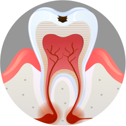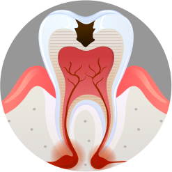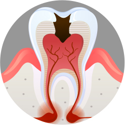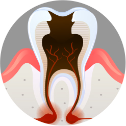 치아의 뿌리까지 충치 진행