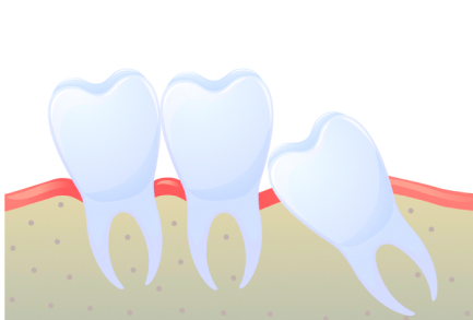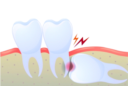 사랑니와 어금니 사이에 음식물이 끼게 되어 충치 및 치주염 발생의 위험율이 높아집니다.