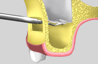 이 막은 위턱 잇몸뼈의 안쪽을 덮고 있습니다. 이 얇은 막을 찢고 상악동을 관통하여
